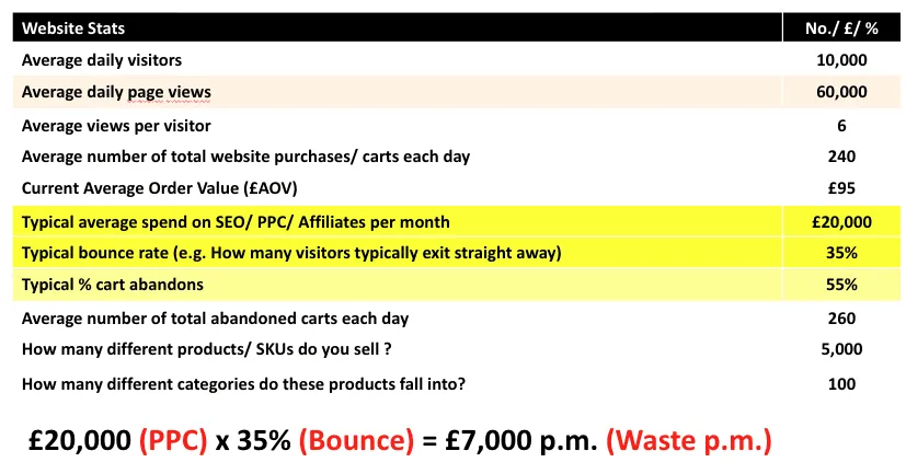 PPC/SEO/Affiliate spend × bounce rate = wasted spend