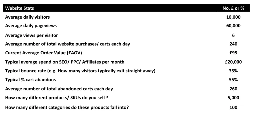 If a prospect shared only these, we could already sketch a rough revenue baseline.