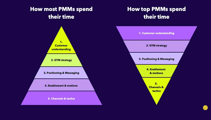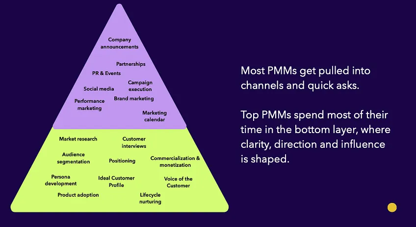 And because of this, most PMMs get pulled toward the visible, fast-moving part of the job: the top of the pyramid.